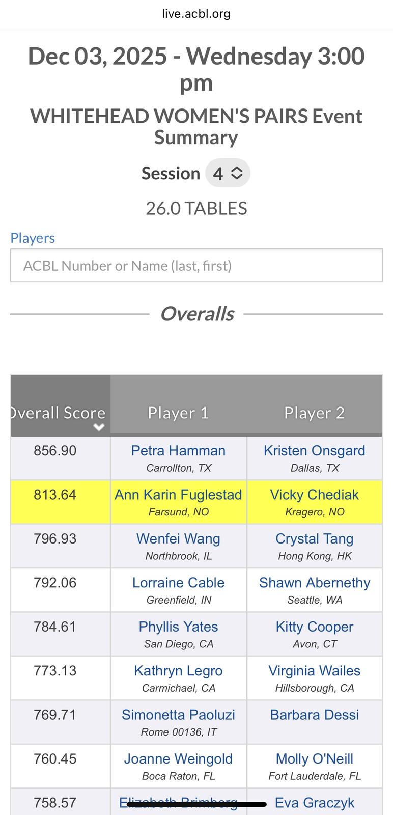 Even Helge spilte med Hjalmar Engesvik i Simultanturneringen i Risør BK 06.10. og fikk 6. plass. Ingunn og Frode A ble nummer 15. Hele 151 par deltok.